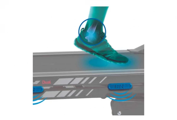 Le machine est équipée d’élastomères de densité spéciale qui offrent un amorti parfait pour les sportifs les plus exigeants : moins de rebond que sur un modèle standard, mais un plus grand amorti que sur l’asphalte