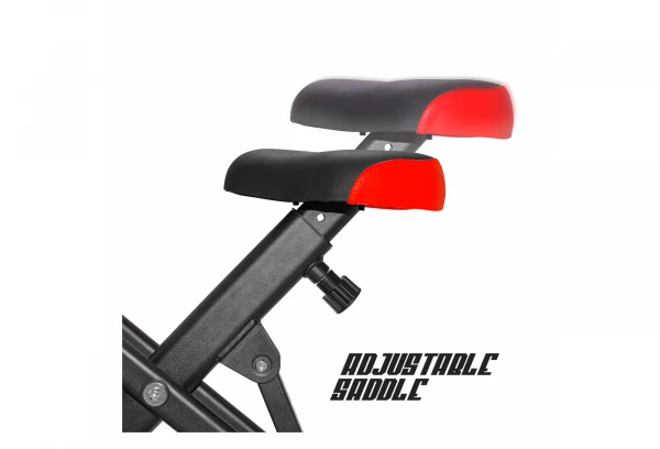 Équipé d’un cadre pliable solide avec des stabilisateurs en caoutchouc antidérapants, d’un siège rembourré à hauteur réglable, d’un moniteur de fréquence cardiaque intégré et d’un support de téléphone portable très pratique.
