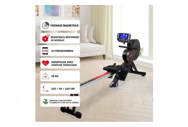 Avec ce rameur, vous pourrez développer votre cardio tout en renforçant vos muscles, dans le confort et la sécurité.