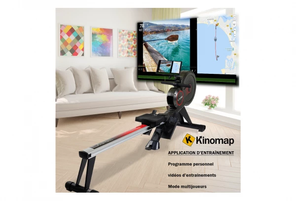 Rower Air Mag est doté d’une console avec 10 fonctions intégrées, des programmes accessibles en quelques secondes, et est compatible avec l’application de coaching Kinomap pour un suivi de vos performances et un entrainement personnalisé.