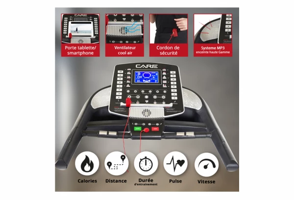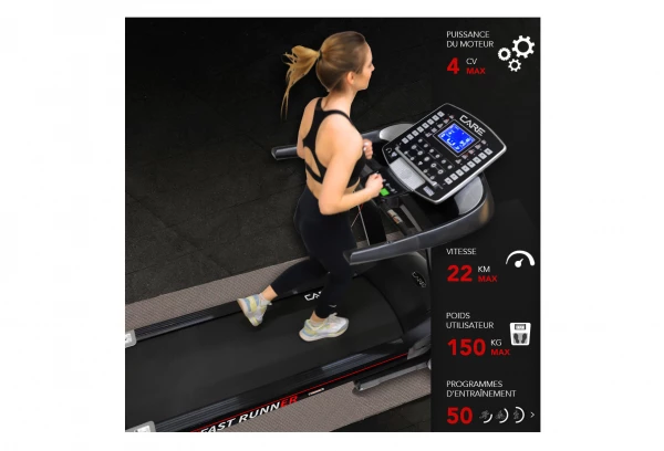 - Vitesse allant de 1 à 22 km/h, idéal pour la marche, le running et le sprint