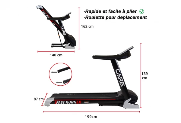 Le Fast Runner est un tapis de course à la fois confortable et ergonomique, pour vous offrir une pratique adéquate et une facilité de rangement:
