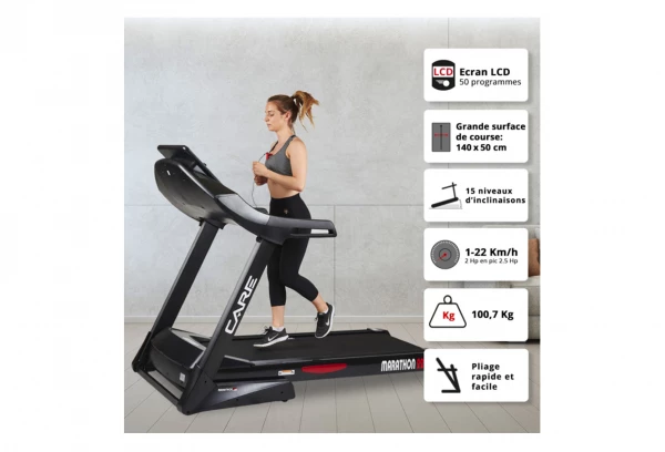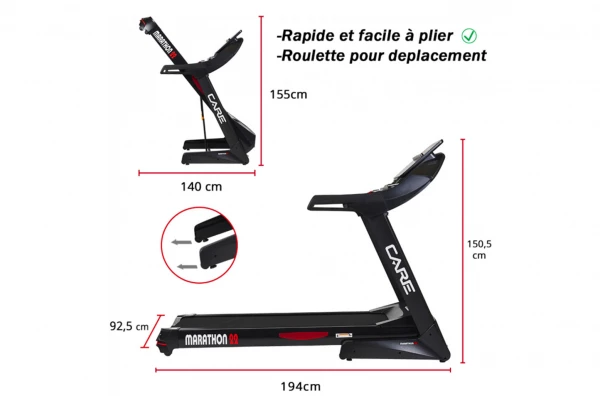 Le Marathon22 est un tapis de course à la fois confortable et ergonomique, pour vous offrir une pratique adéquate et une facilité de rangement: