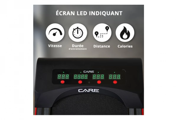 - Vitesse allant de 0.8 à 6 km/h, idéal pour la marche et la marche rapide