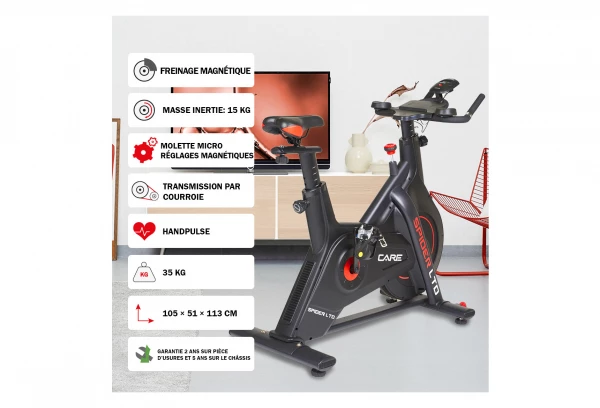Le spider LTD est idéal avec sa masse d’inertie de 15Kg qui vous permet de ne sentir aucun à-coups et de régler la résistance précisément