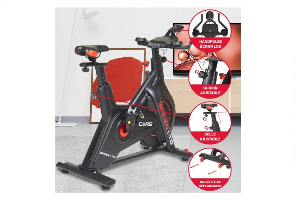 Ce vélo Speed racer est équipé d’un compteur qui intègre 6 fonctions essentielles pour le suivi de votre progression.