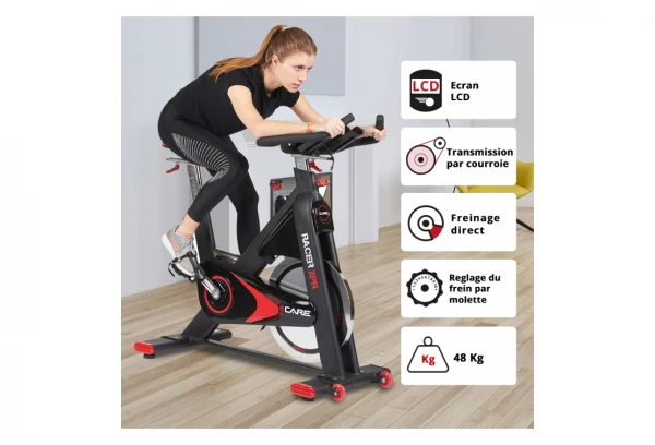 Le vélo Racer XPR est idéal avec sa masse d’inertie de 24Kg qui vous permet de ne sentir aucun à-coups et de régler la résistance précisément