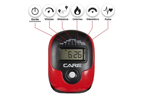 Ce vélo SP-490 est équipé d’un compteur qui intègre 7 fonctions essentielles pour le suivi de votre progression.