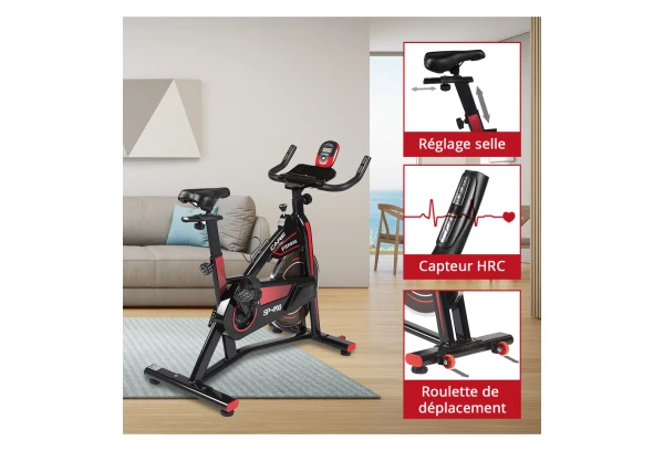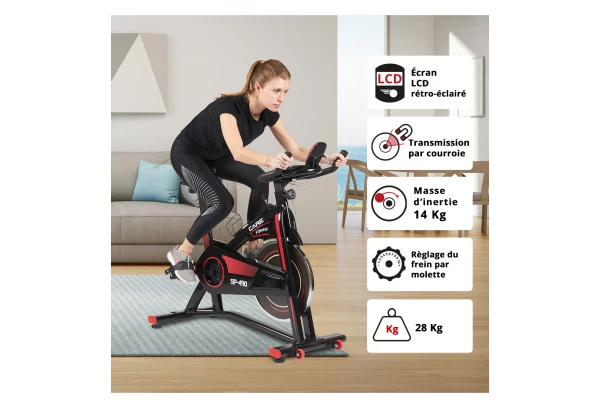 Le vélo SP-490 est idéal avec sa masse d’inertie de 14Kg qui vous permet de ne sentir aucun à-coups et de régler la résistance précisément