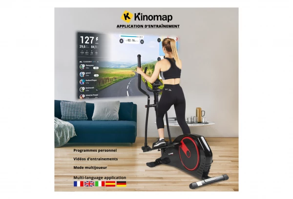 Cet elliptique est idéal pour des entrainements intenses et un suivi sportif optimal. Ce vélo elliptique fonctionne en Bluetooth avec Kinomap !