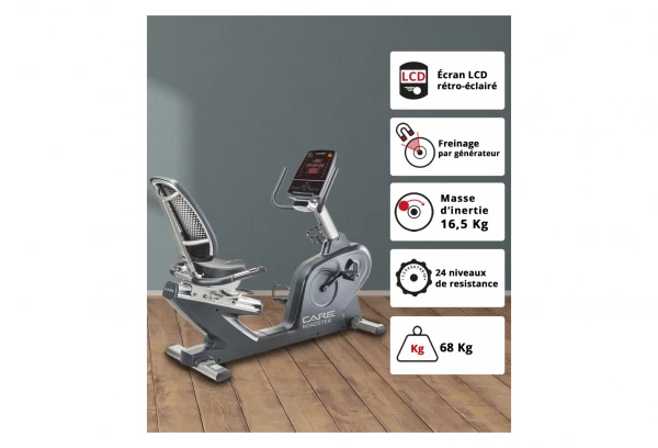 Ce vélo de fitness semi-allongé est idéal pour des séances d’endurance davantage axé sur le renforcement des cuisses et fessiers. Confortable et adapté aux différents objectifs et profils.