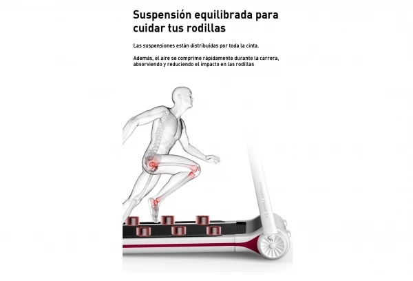 – Équipement de suspension réparti sur toute la bande pour absorber et réduire l’impact sur les genoux.