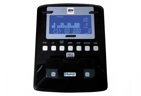 Console LCD rétro-éclairagé bleu avec 12 profils d’exercice différents et 24 niveaux d’intensité