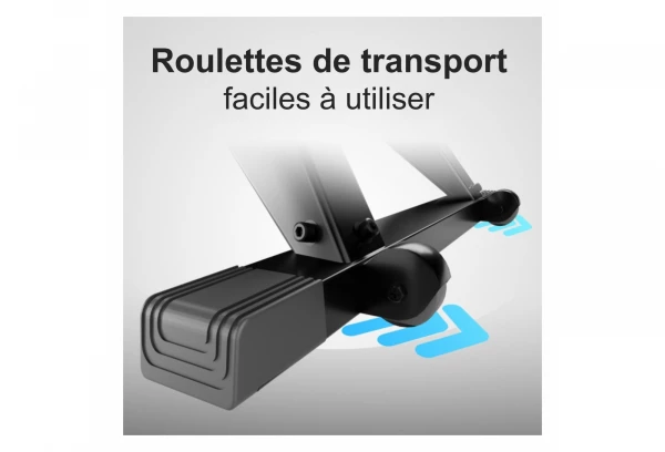 Grâce à ses dimensions réduites de 240 x 62 x 106 cm, ce rameur est idéal pour les petites pièces et pour l’ entraînement à domicile. L’ AirRow peut être rapidement et facilement démonté pour le stockage (sans outils). Pour plus de mobilité, le dispositif d’ entraînement est doté de roulettes de transport stables à l’ avant. Le rameur peut ainsi être déplacé par une seule personne sans trop d’ efforts.