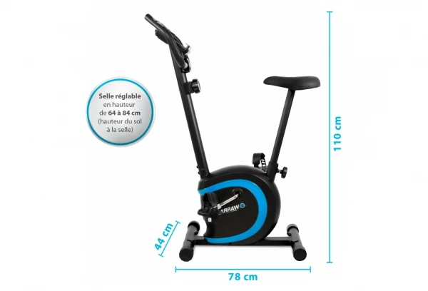 - Selle ajustable : min 64 cm max 84 cm (du sol au haut de la selle)