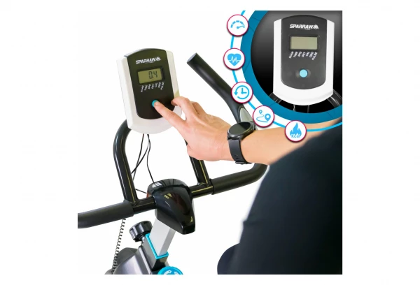 Pour un suivi efficace de vos séances, ce vélo intègre des capteurs de pouls tactiles sur le guidon et un écran LCD (fonctionne avec des piles AAA non fournies) affichant 6 fonctions principales : le temps écoulé, le nombre de kilomètres parcourus et le nombre de calories dépensées depuis le début de votre séance mais aussi la distance totale accumulée parcourue puis la vitesse et la fréquence cardiaque.