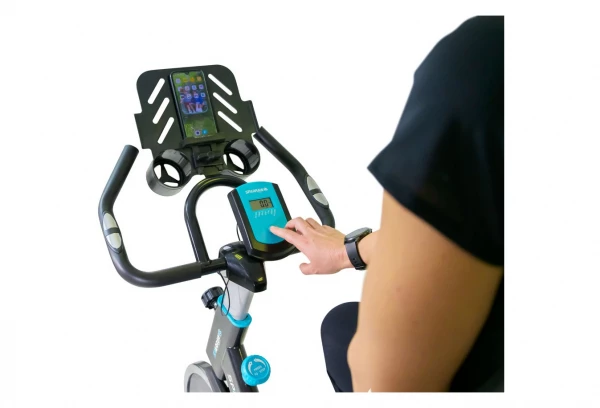 Pour le côté pratique ce vélo est équipé d’un porte gourde afin d’éviter toute interruption lors de votre training ainsi que d’un support pour smartphone ou tablette vous permettant ainsi de rester à tout moment connecté ou de suivre votre série préférée.