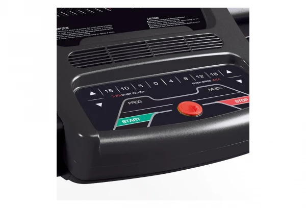 – Informations : vitesse, inclinaison, fréquence cardiaque, distance, temps, calories brûlées, programme en exécution, tour 400 mètres