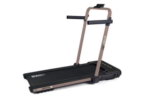 Ce tapis de course EVERFIT TFK-135-SLIM-R de couleur rose doré est un tapis roulant pliable et pré-assemblé. La console est composée de 4 écrans LED blancs où vous pourrez lire toutes les informations importantes pour une bonne séance d’entraànement. Une télécommande est fournie avec ce tapis de course pour faire démarrer ou arrêter le tapis et augmenter ou diminuer la vitesse.