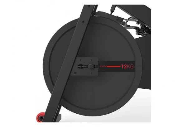 La roue d’inertie de 12kg offre de bonnes sensations de pédalage pour une intensité de pratique modérée. La transmission par chaîne offre des sensations de pédalage similaires au vélo de route. La résistance par patin en cuir permet une résistance réglable, fluide et assez silencieuse.